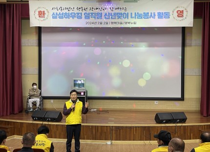 ※삼성하우징 시무식※ 안녕하세요. 삼성하우징도어 입니다.우리 삼성하우징은 매년 시무식을 뜻깊게 봉사활동으로 시작하는데요,올해 시무식은 독감유행으..