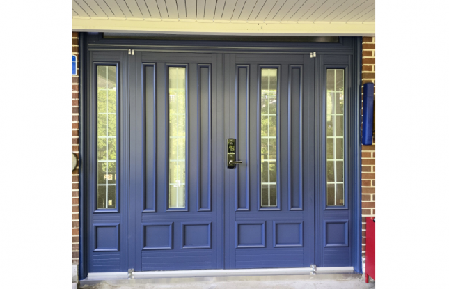 대전에 시공한 패션 양개도어입니다. 색상:씨블루
