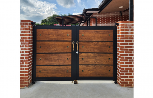 공주에 시공한 조립대문 입니다.모델명: SG32 색상: 블랙+나이브우드